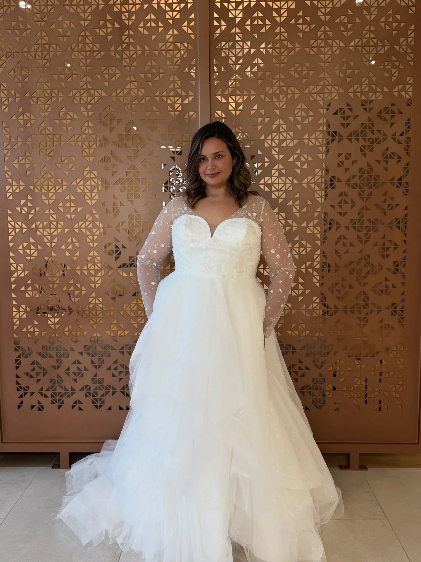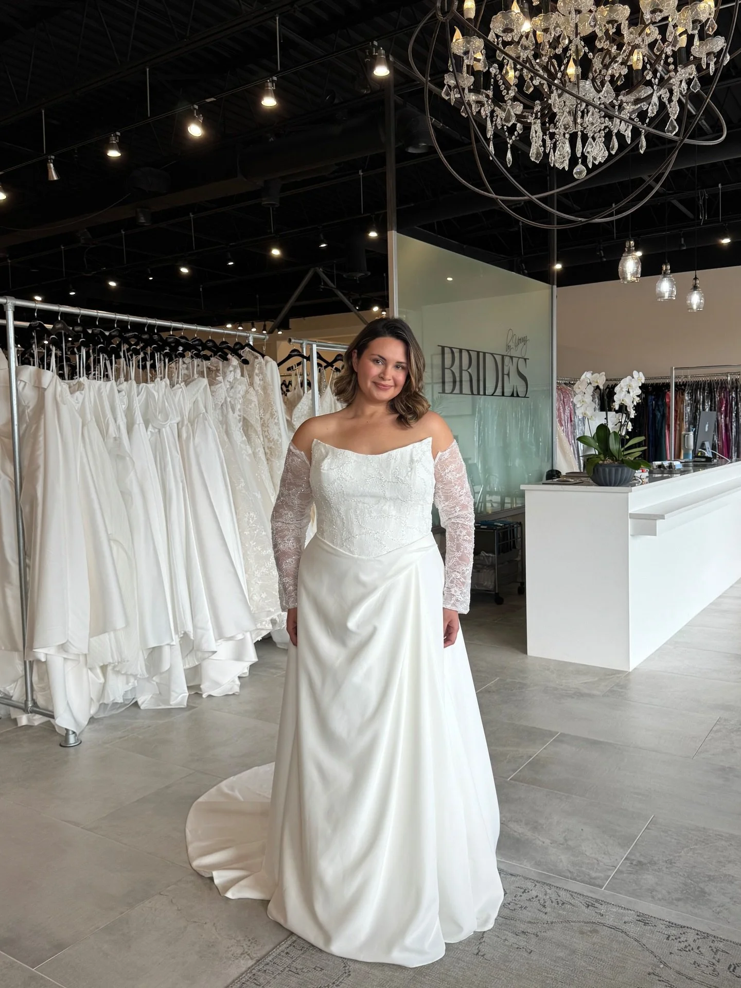 Our samples range in bridal sizes 16-36 specifically for mid to plus-size brides!